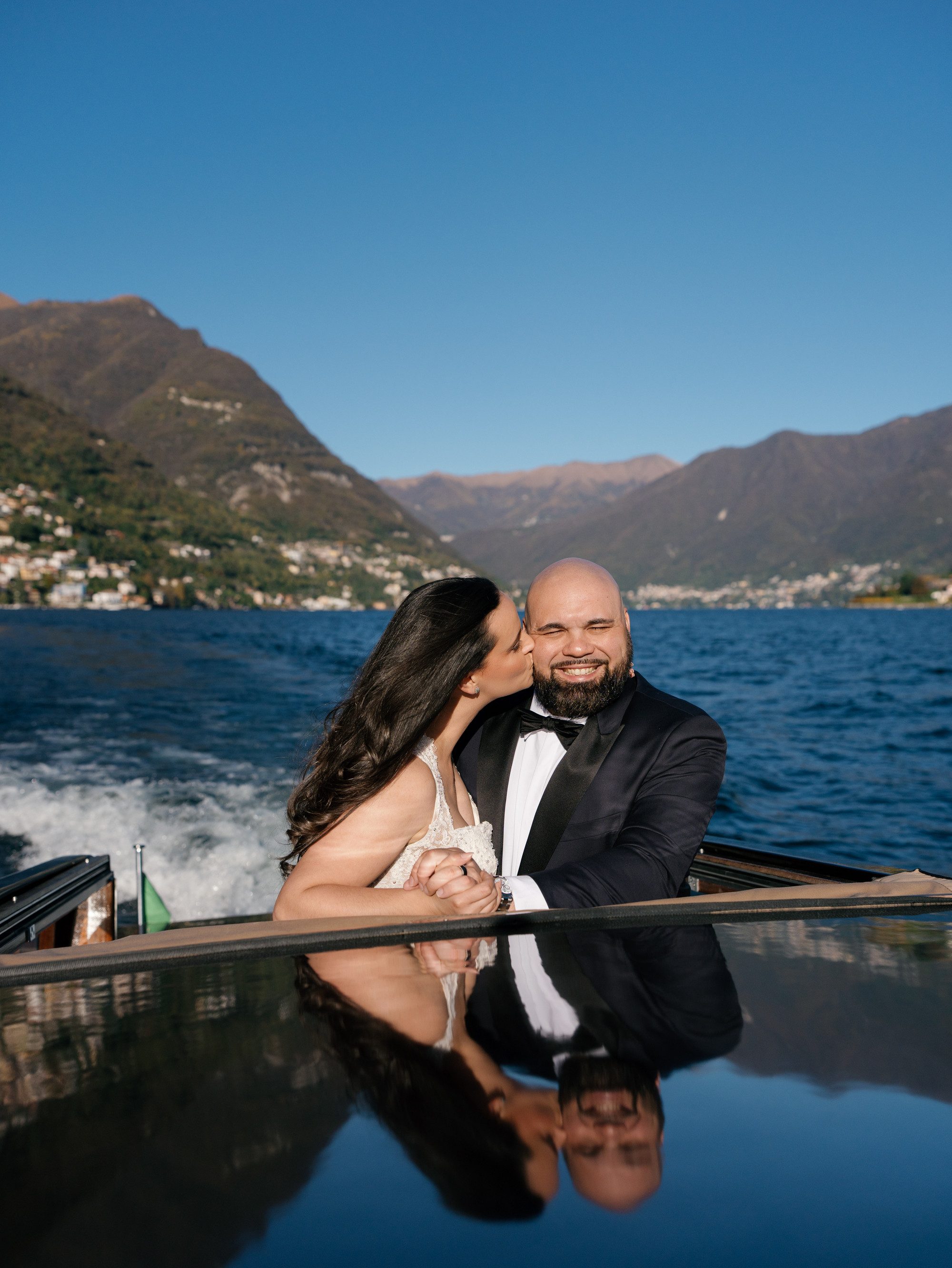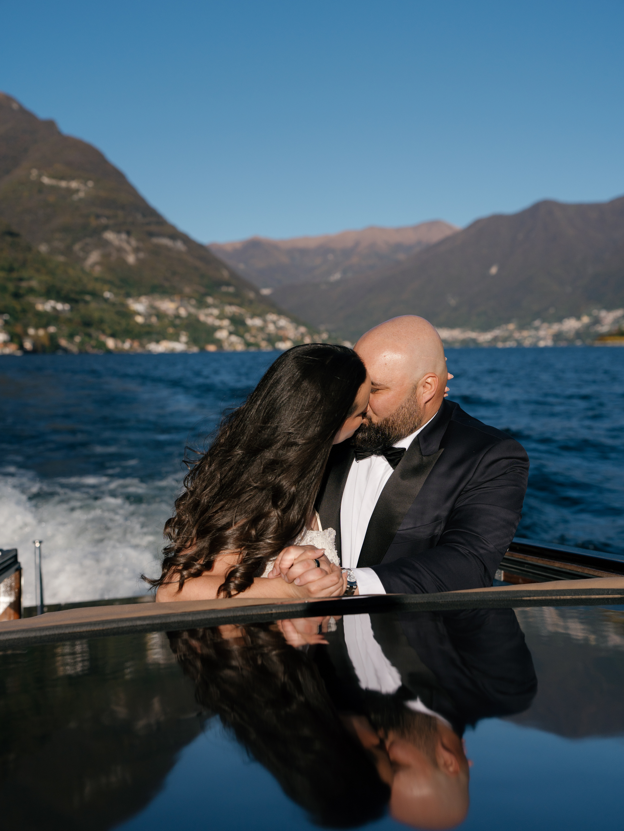 Reflective lakeside sessions bring calm and poetic energy to wedding photography.
